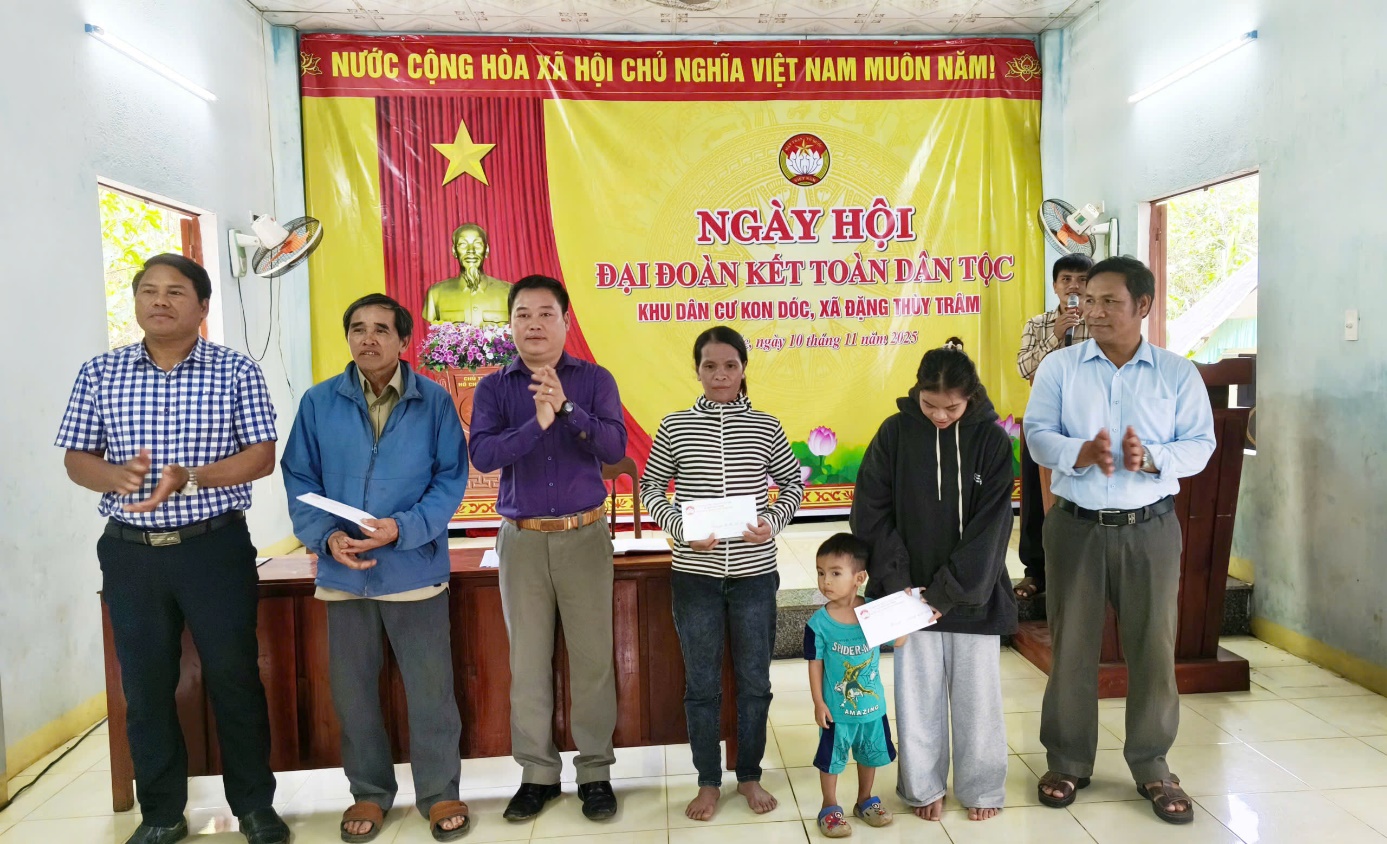 Hướng tới kỷ niệm 95 năm Ngày thành lập Mặt trận Dân tộc Thống nhất Việt Nam và Ngày truyền thống Mặt trận Tổ quốc (MTTQ) Việt Nam (18/11/1930 – 18/11/2025), thực hiện sự chỉ đạo của Ban Thường trực Ủy ban MTTQ Việt Nam xã Đặng Thùy Trâm. Sáng ngày 10/11/2025, tại nhà văn hóa thôn Kon Dóc, Ban Công tác Mặt trận thôn Kon Dóc đã tổ chức Ngày hội Đại đoàn kết toàn dân tộc. Đây là thôn đầu tiên của xã được chọn làm điểm tổ chức ngày hội.