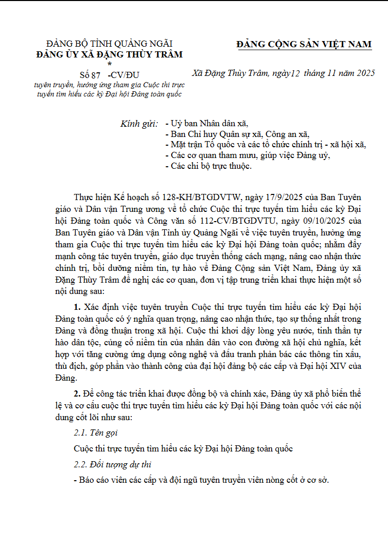 Tuyên truyền, hưởng ứng tham gia Cuộc thi trực tuyến tìm hiểu các kỳ Đại hội Đảng toàn quốc