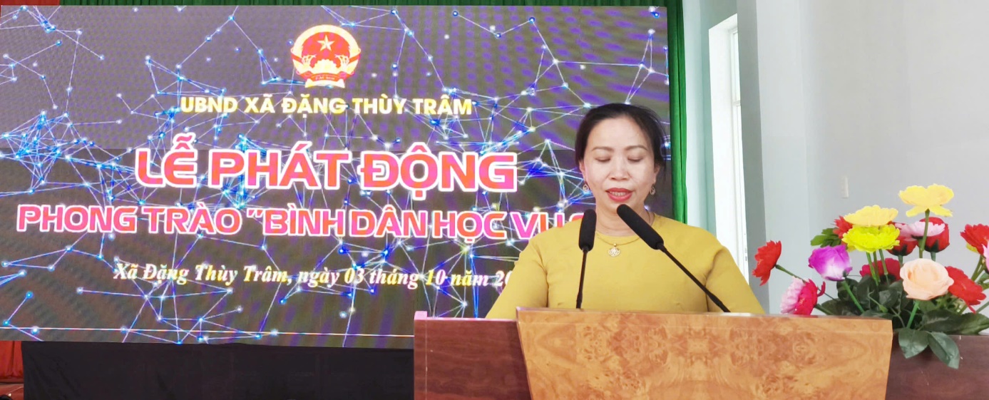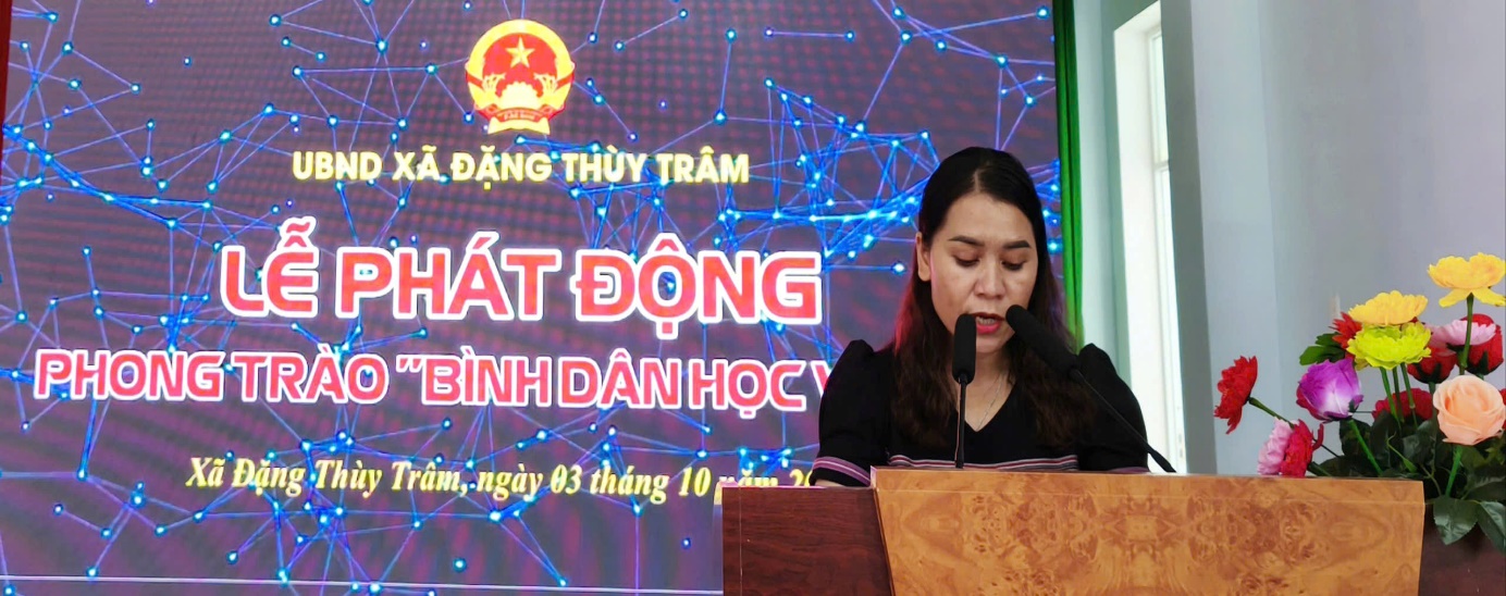 Phát biểu khai mạc, đồng chí Nguyễn Thị Vân – Phó Bí thư, Chủ tịch UBND xã nhấn mạnh: Phong trào Bình dân học vụ số được phát động là bước khởi đầu quan trọng, khẳng định quyết tâm của xã Đặng Thùy Trâm trong việc nâng cao nhận thức, kỹ năng số cho cán bộ và Nhân dân. Mỗi Cán bộ, đảng viên phải đi đầu, làm gương trong học tập, ứng dụng công nghệ; các cơ quan, đơn vị và Nhân dân tích cực tham gia tập huấn, đưa các nền tảng số vào công việc và đời sống, góp phần thúc đẩy kinh tế số, xã hội số tại địa phương.
