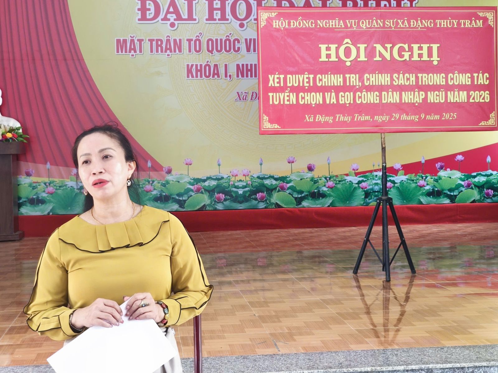 Sáng ngày 29/9/2025, tại Nhà văn hóa xã Đặng Thùy Trâm, Hội đồng Nghĩa vụ quân sự xã tổ chức Hội nghị xét duyệt chính trị, chính sách trong công tác tuyển chọn và gọi công dân nhập ngũ năm 2026. Đồng chí Nguyễn Thị Vân – Phó Bí thư, Chủ tịch UBND, Chủ tịch Hội đồng Nghĩa vụ quân sự xã chủ trì Hội nghị.