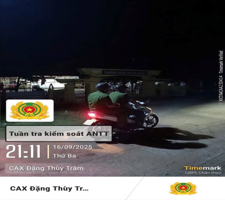 Cán bộ công an xã thường xuyên tuần tra kiểm tra an ninh trật tự trên địa bàn xã