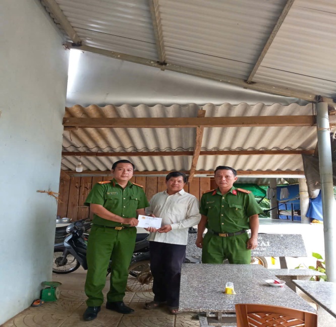 Cán bộ Công an xã tặng quà cho cán bộ công an xã bán chuyên trách nhân kỷ niệm 80 ngày truyền thống