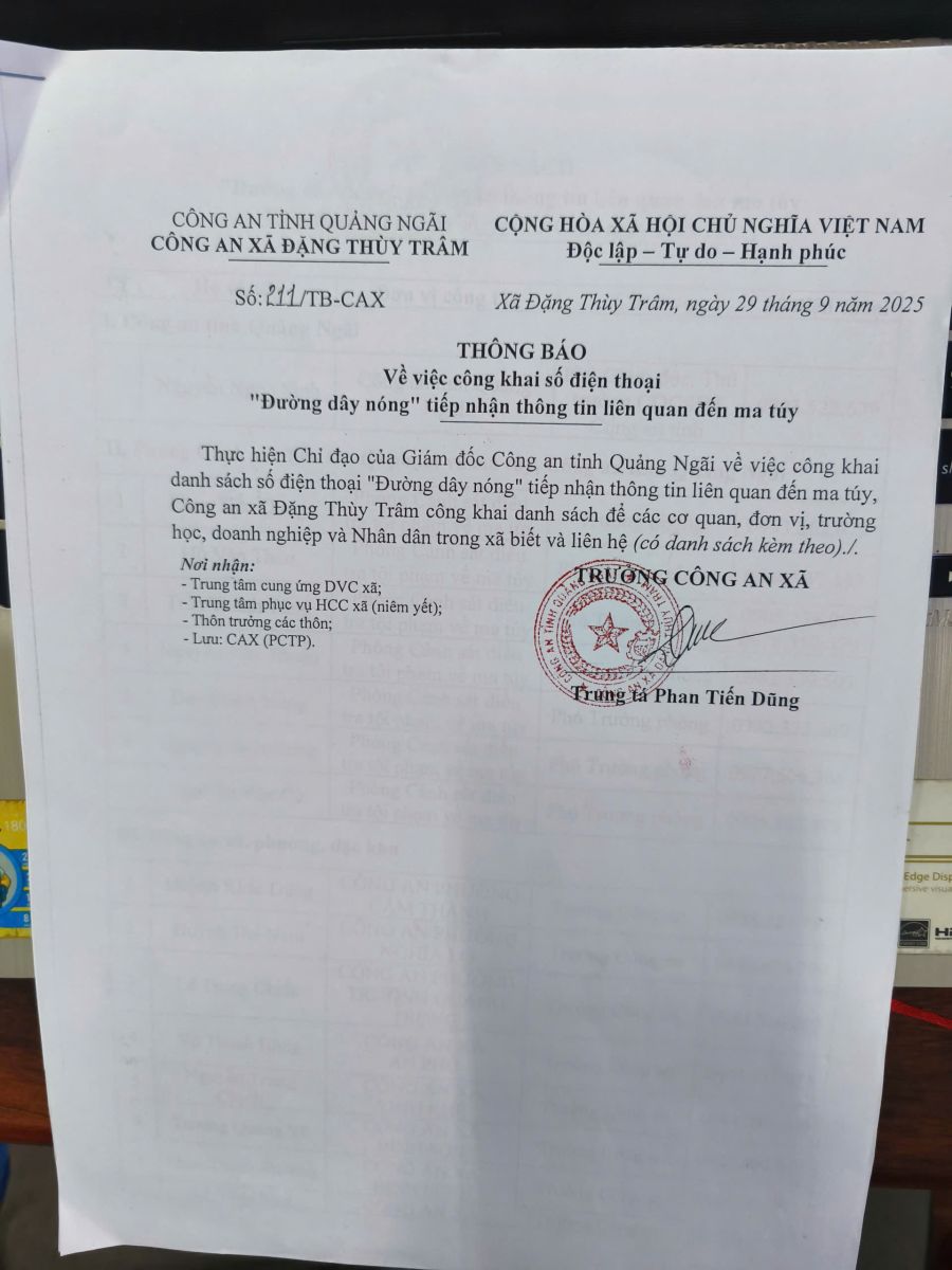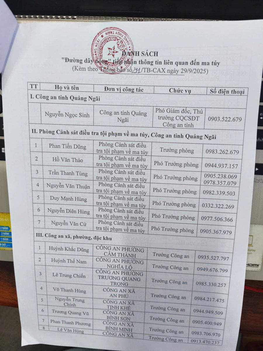 Đường dây nóng tiếp nhận thông tin liên quan đến ma túy
