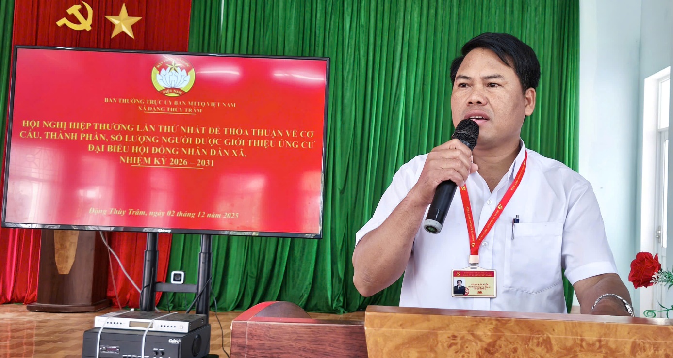 Sáng ngày 02/12/2025, tại Nhà văn hóa xã Đặng Thùy Trâm, Ban Thường trực Ủy ban MTTQ Việt Nam xã đã tổ chức Hội nghị hiệp thương lần thứ nhất nhằm thỏa thuận về cơ cấu, thành phần và số lượng người được giới thiệu ứng cử đại biểu HĐND xã nhiệm kỳ 2026–2031, bước mở đầu quan trọng trong quy trình bầu cử theo quy định của Luật Bầu cử.