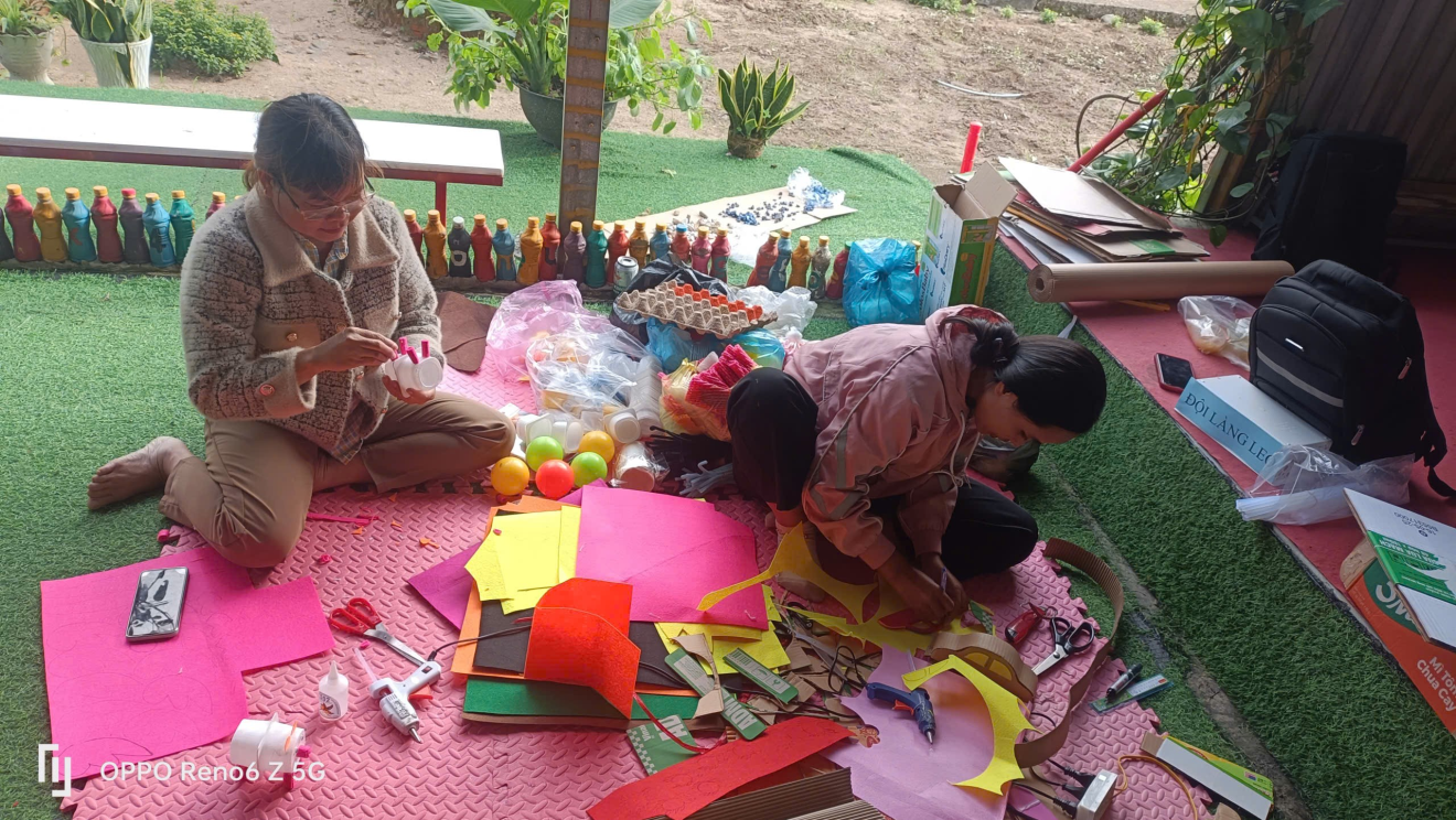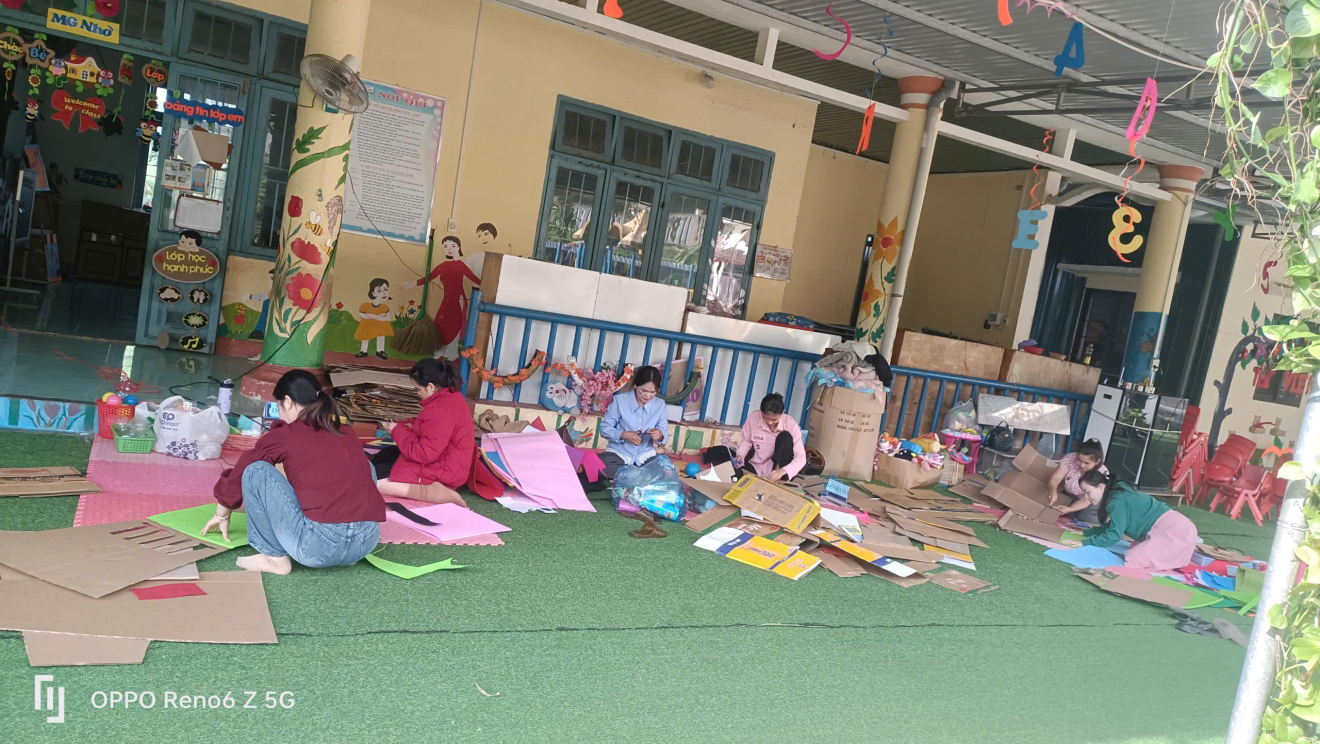 (Giáo viên đang làm đồ đồ dùng, đồ chơi)