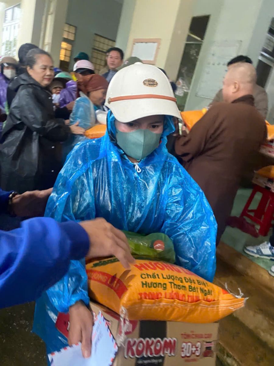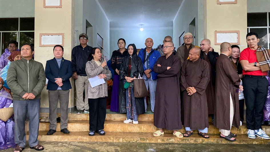 Đại diện đoàn từ thiện đã thăm hỏi, chia sẻ và gửi những lời chúc tốt đẹp đến bà con trên địa bàn xã Đặng Thùy Trâm.
